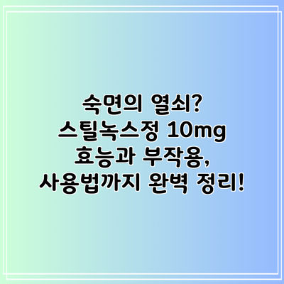 숙면의 열쇠? 스틸녹스정 10mg 효능과 부작용, 사용법까지 완벽 정리!