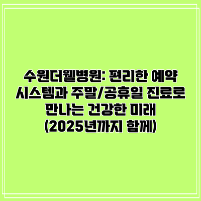 수원더웰병원: 편리한 예약 시스템과 주말/공휴일 진료로 만나는 건강한 미래 (2025년까지 함께)