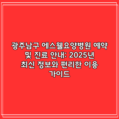 광주남구 에스웰요양병원 예약 및 진료 안내: 2025년 최신 정보와 편리한 이용 가이드